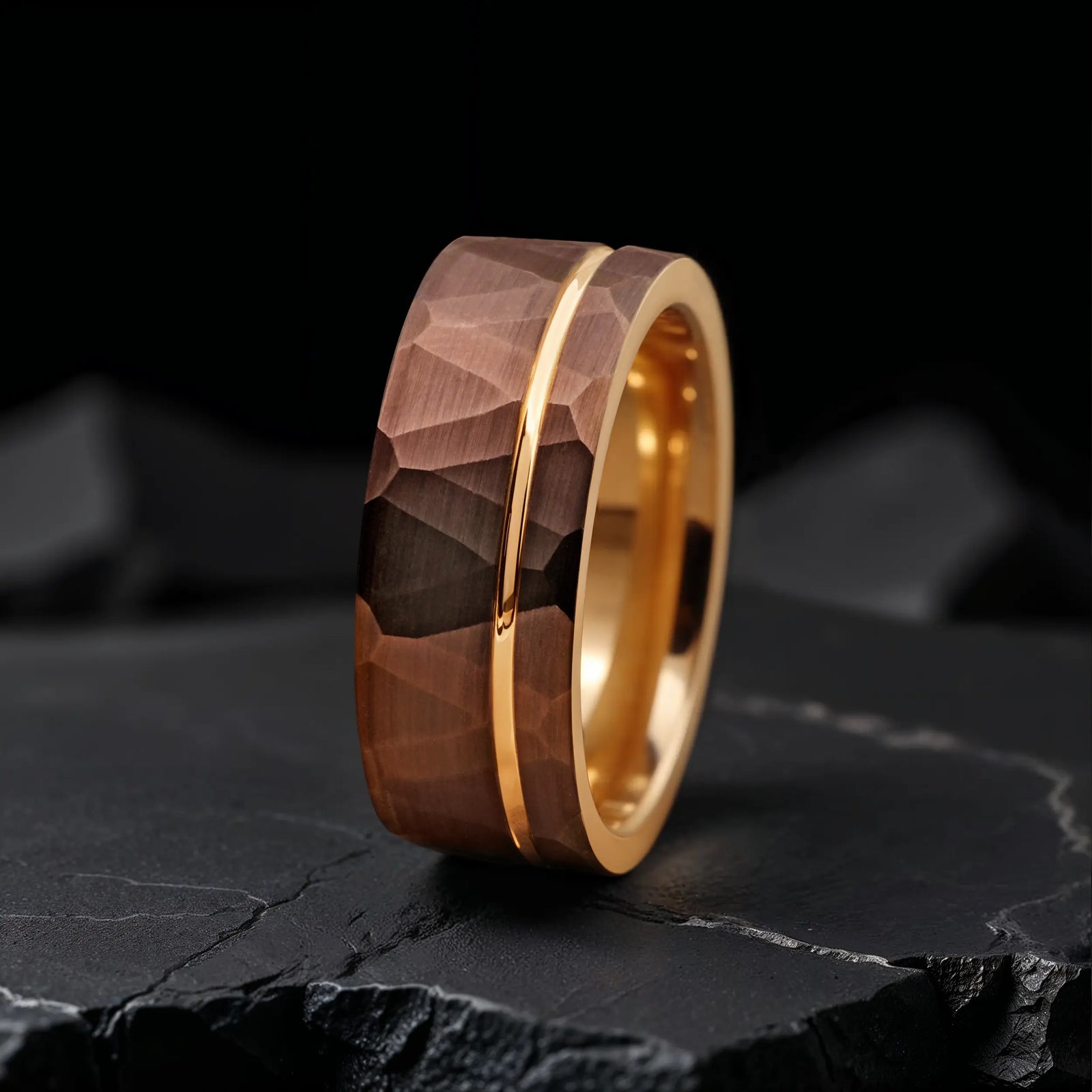 Exclusive Rose Gold Hammered Tungsten Rings – Where Strength Meets Elegance
