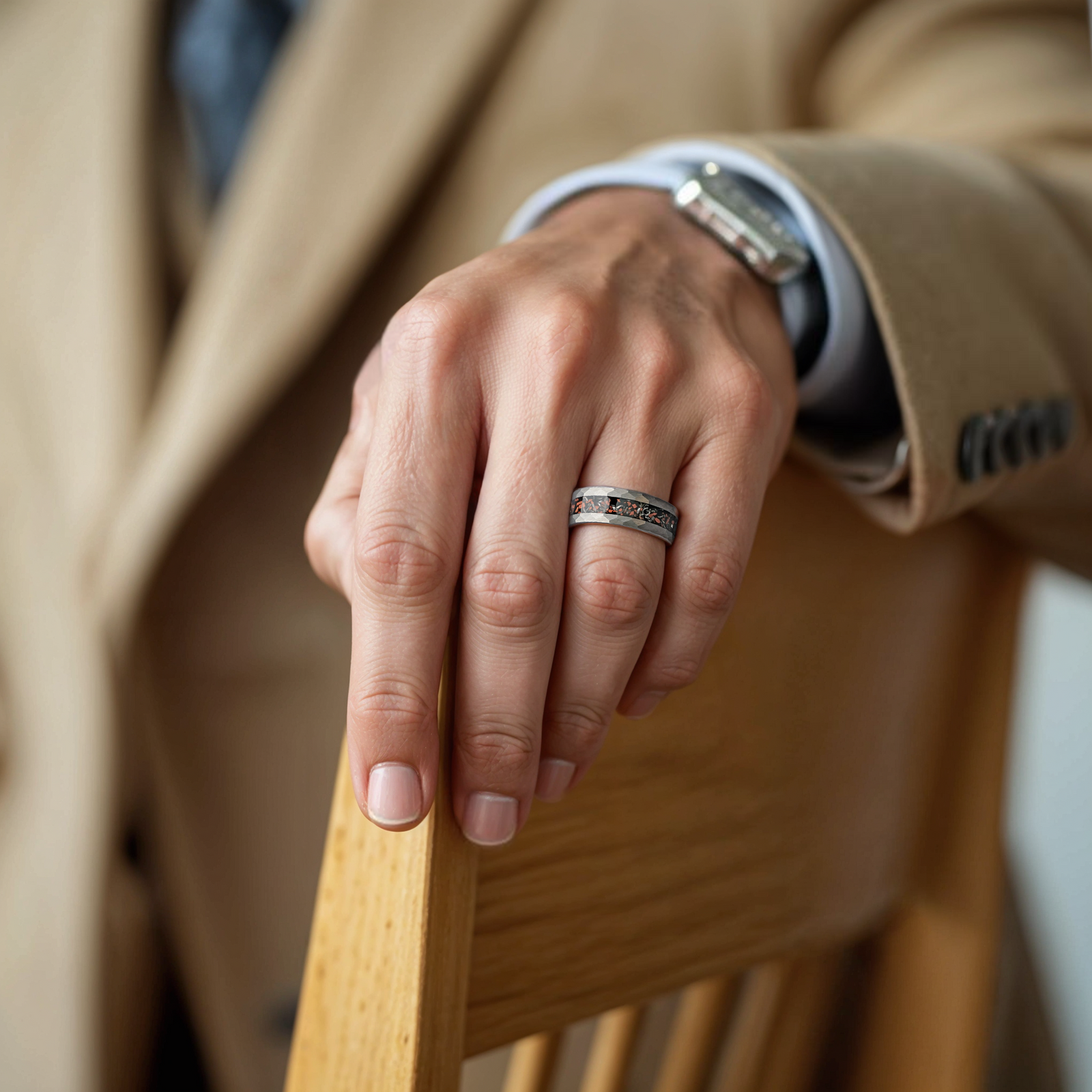 Durable Tungsten Carbide Construction: Crafted from premium tungsten carbide, this ring is designed to withstand the test of time. Tungsten carbide is known for its exceptional hardness, ensuring that your ring remains as polished and pristine as the day you first wore it.