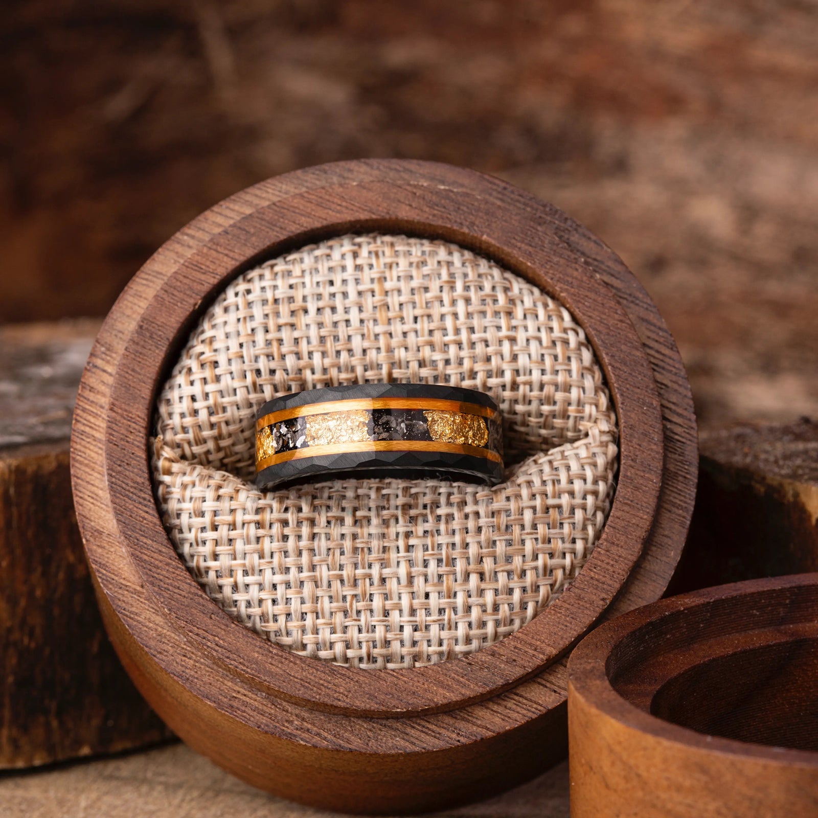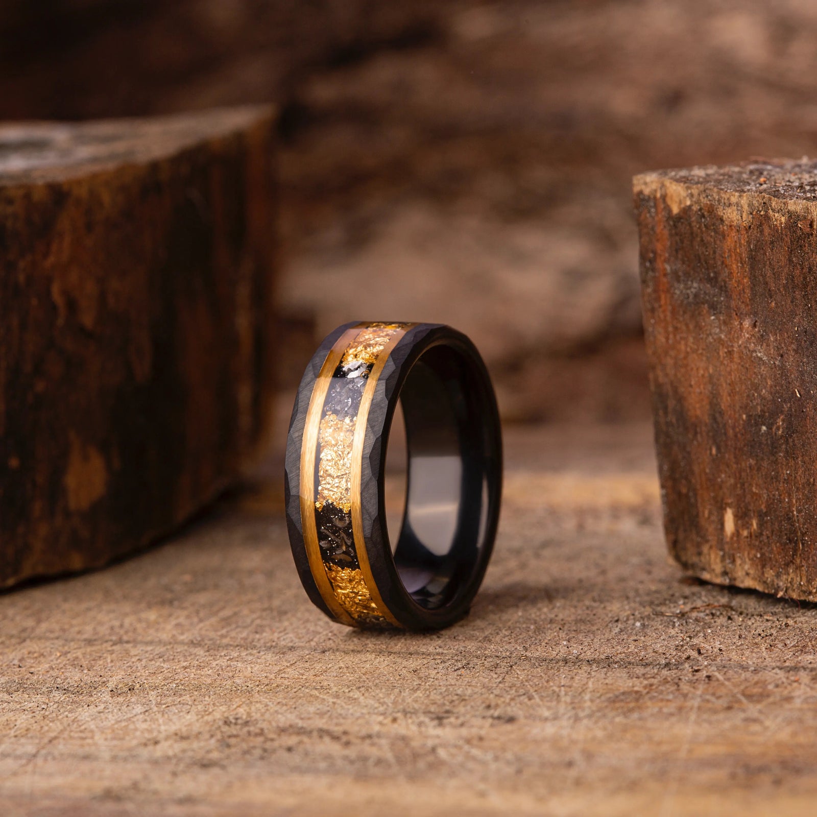 IGNIS combines the bold durability of black tungsten with the refined beauty of real gold foil — a perfect balance of strength and sophistication. Each ring is handcrafted in small batches, ensuring that every pattern is naturally unique.