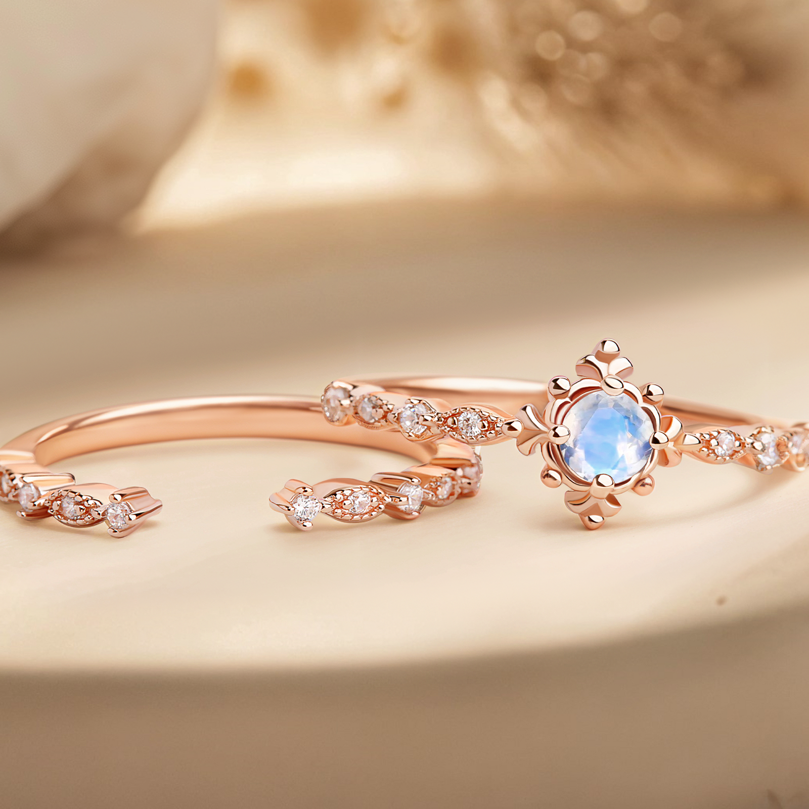 • Enchanting Moonstone: The ring showcases an exquisite oval moonstone, known for its ethereal play of light and ever-changing colors.