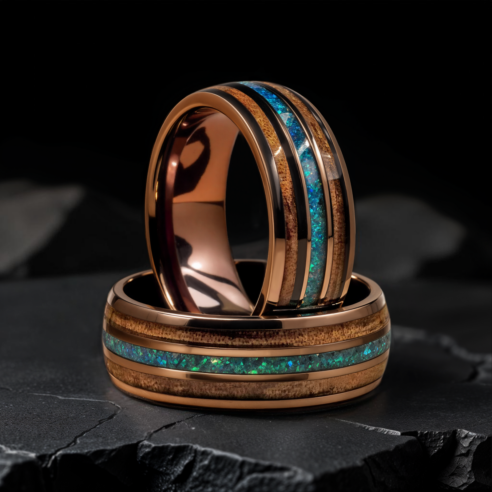 This ring is absolutely stunning! The Hawaiian koa wood has such a rich, natural glow that looks even better in person. The craftsmanship is flawless — elegant, masculine, and timeless. My fiancé hasn’t stopped admiring it since the moment it arrived!