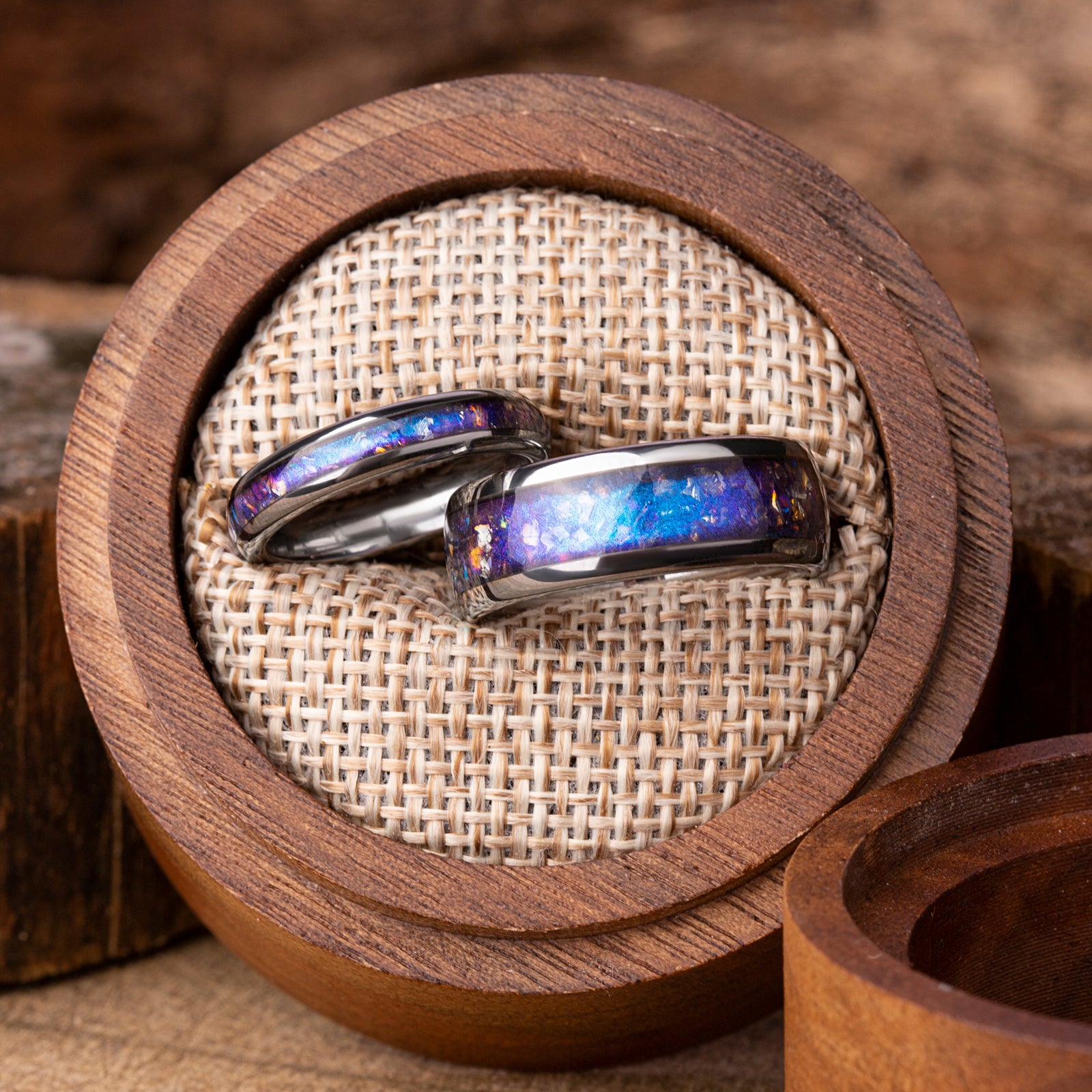 Unique Aqua Tungsten Men's Galaxy Opal Wedding Ring